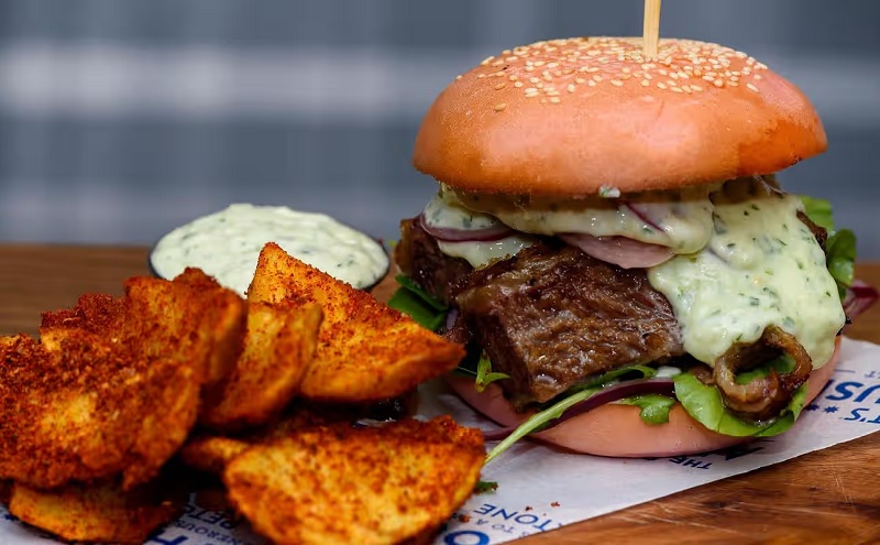 The Steak Sandwich is a classic pub option that brings grilled steak, caramelized onions, and melted cheese together in a toasted bun or ciabatta. Often served with salad greens and a smoky aioli or mustard sauce, it’s a simple but flavour-packed choice. Perfect for a quick, filling lunch or a casual dinner, this sandwich combines hearty meatiness with fresh ingredients for a perfect balance.
